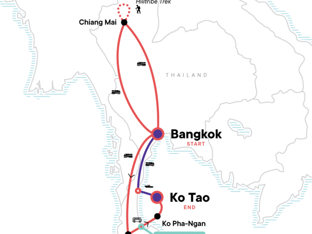 Experience the bustling streets of Bangkok, explore colourful Chiang Mai, trek to remote hilltribe villages, float down a river on a bamboo raft, enjoy the island beaches of Ko Pha-Ngan and Ko Tao, take a longtail boat tour of Cheow Lan Lake, check out the marine life with a snorkelling trip