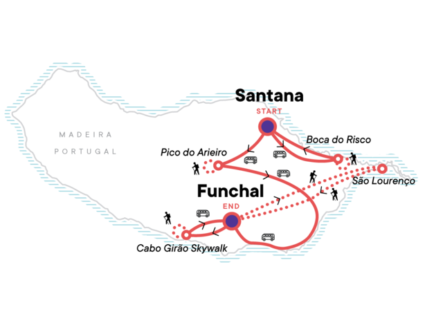 Trek to one of the highest peaks in Madeira, Discover the history of A-Frame houses in Santana, See breathtaking views of the north coast on a hike from Machico to the Boca do Risco viewpoint, Hike a trail from Funchal to São Lourenço Pont, the easternmost peninsula of Madeira, Witness the jaw-dropping view from the Cabo Girão cliffs and Skywalk